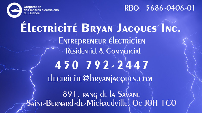 des travaux soignés et suivant les normes du code de l’électricité du Québec, Électricité Bryan Jacques Inc.